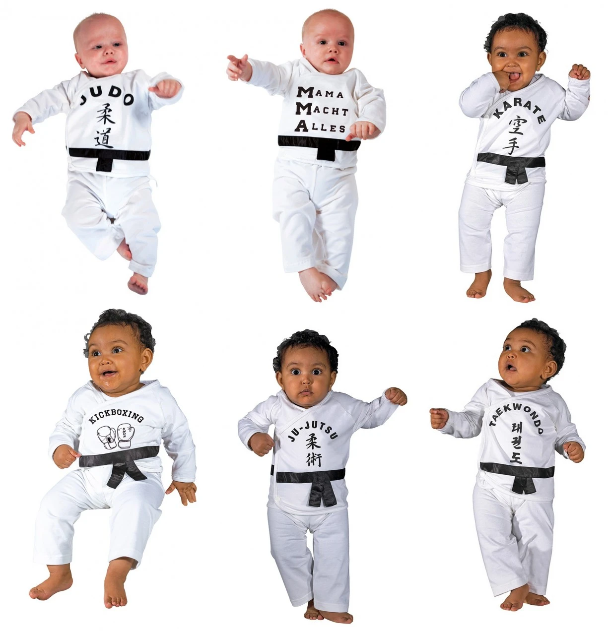 Der Anzug für die kleinen Kampfsportler von morgen ist in verschiedenen Kampfsportdesigns erhältlich.