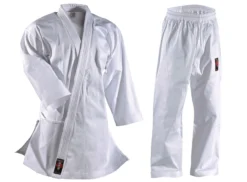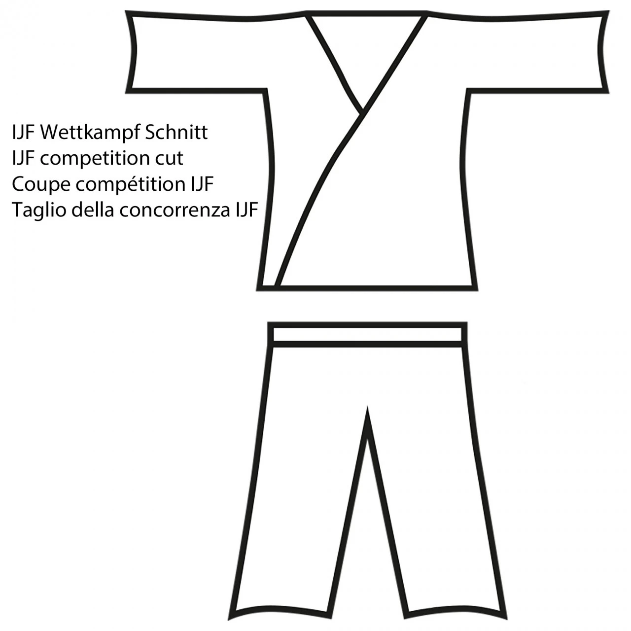 Der Stoff ist wie vorgeschriebenen in Körperbindung gewebt mit „Shashiko-Garn“. Der neue IJF Judogi entspricht allen internationalen und nationalen Wettkampfregularien. Revers ist 4 cm breit, max. 4 Nähte, Hose ist an den Knien verstärkt, Schnürbund.