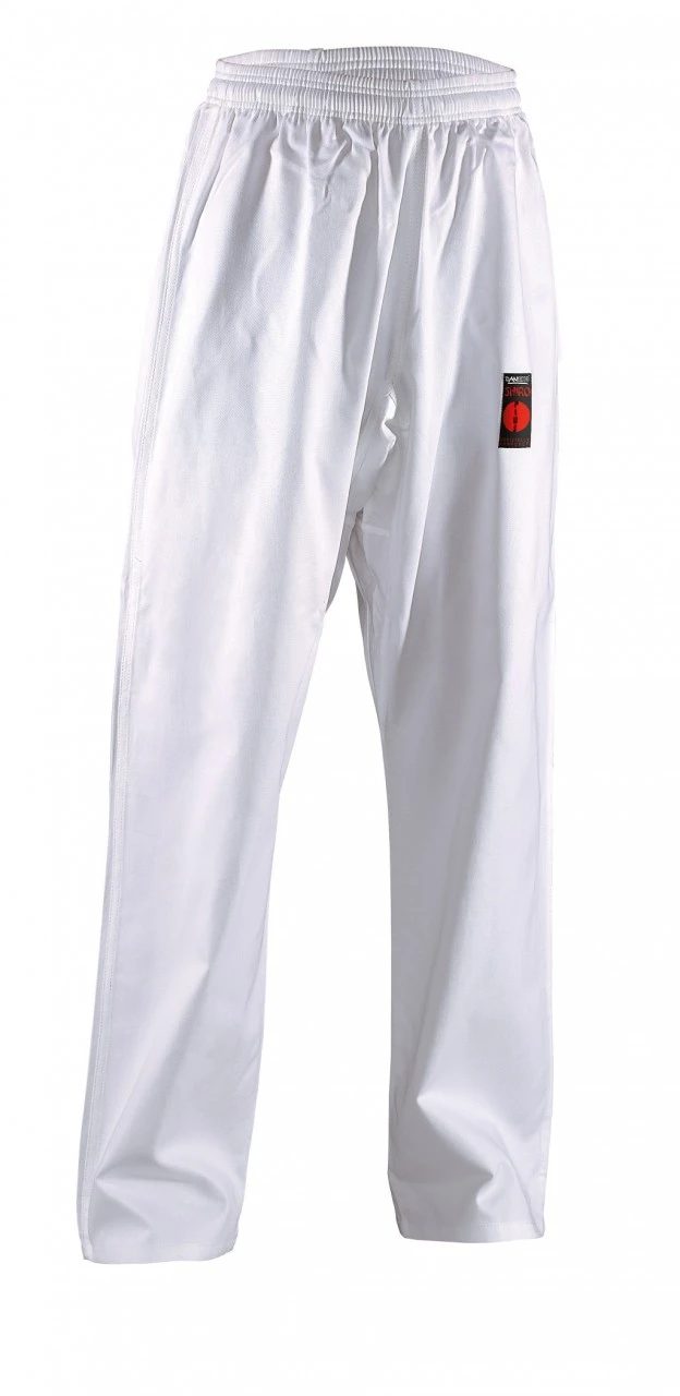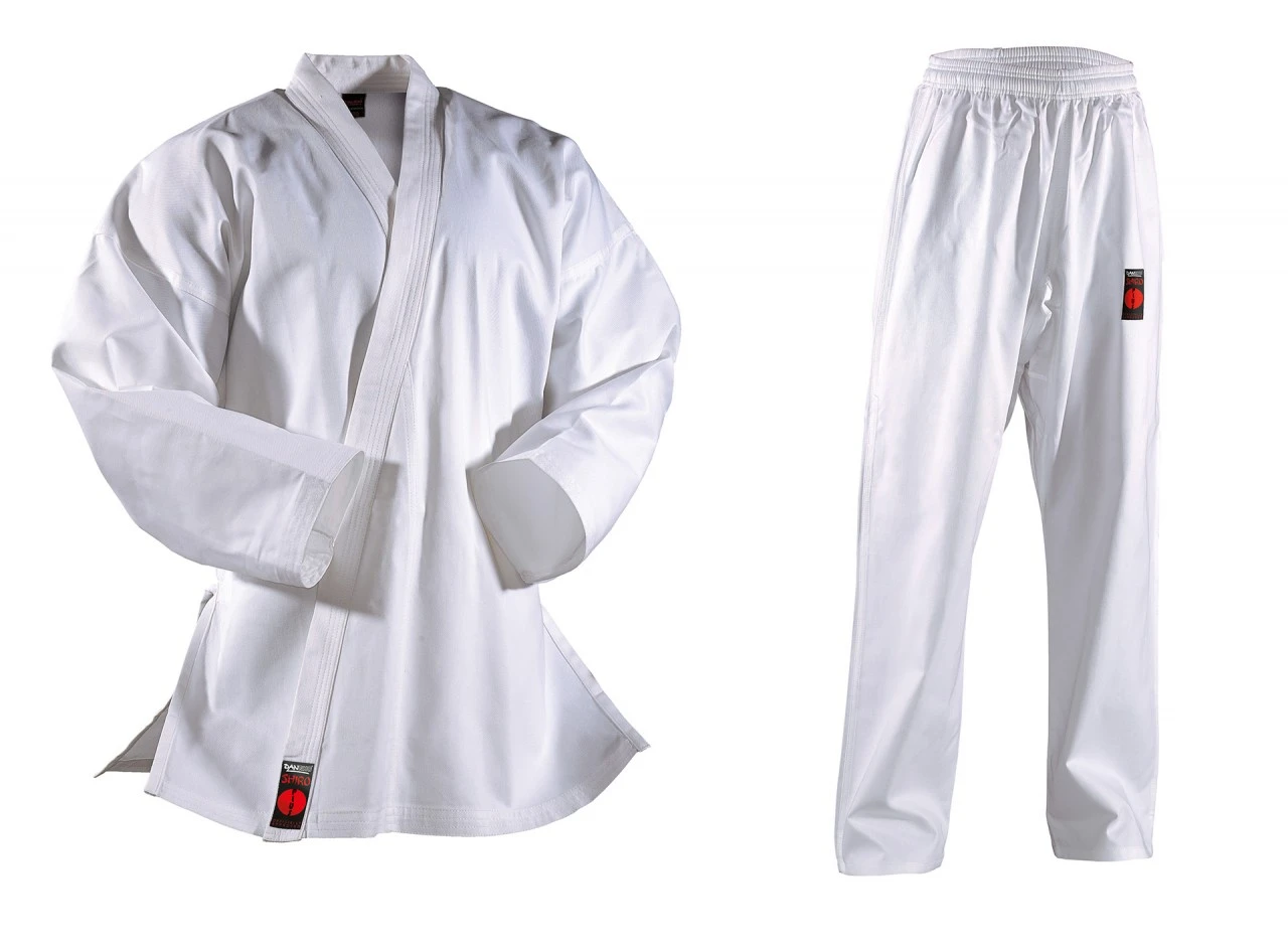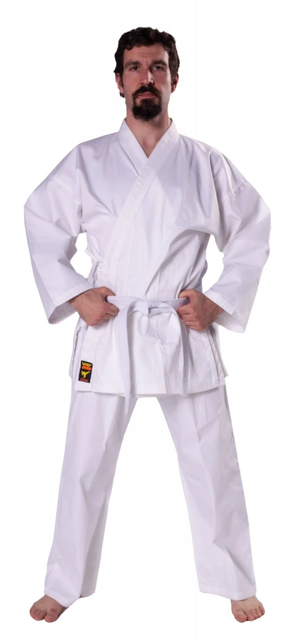 Mittelschwerer, traditioneller Karateanzug aus 100% Baumwolle in 9 oz. Ausführung. Über Jahre hinweg bewährtes Modell für Einsteiger und Fortgeschrittene. Sehr bequemer Schnitt sorgt für höchsten Tragekomfort. Hose mit Elastikbund. Lieferung erfolgt mit weißem Gürtel.