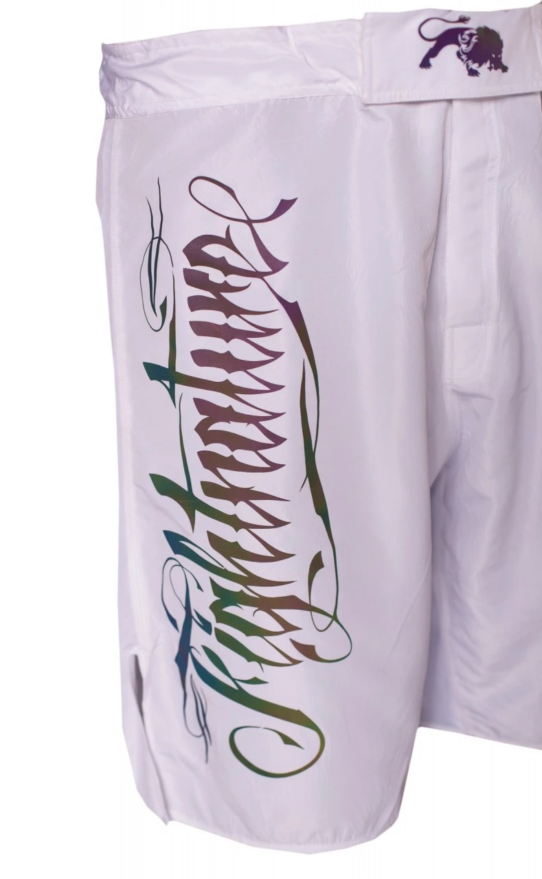 Die MMA Shorts mit reflektierendem FIGHTNATURE-Print in Regenbogenfarben stellt einen Blickfang dar und ist sehr bequem beim Training bzw. Wettkampf. Das verarbeitete Material ist extrem strapazierfähig. Besonders der elastische Zwickel und verstärkte Nähte am Schlitz der Außenbeine sorgen für fast uneingeschränkte Bewegungsfreiheit. Horizontaler und vertikaler Klettverschluss sorgt für einen optimalen Halt.