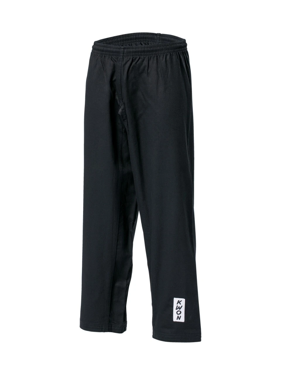 Mit Elastikbund und zusätzlicher Schnürung für einen perfekten Sitz. Die Hosenbeine der robusten Baumwollhose werden nach unten hin enger und sind vierfach umgenäht. Die formstabile Kampfsporthose dank der Sanforisierung beim Waschen kaum ein.