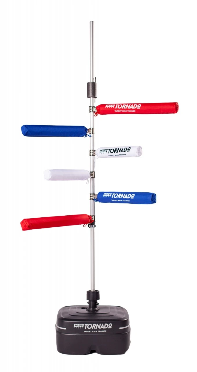 Stabiles Trainingsgerät mit 6 drehbaren, weichen Kickpolstern in unterschiedlichen Höhen zur Optimierung der Kick-Technik.