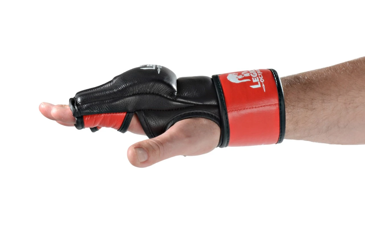 - Die offene Innenhand des Lederhandschuhs ermöglicht die optimale Ausführung der Grifftechniken im MMA – oder Grappling – Kampf.