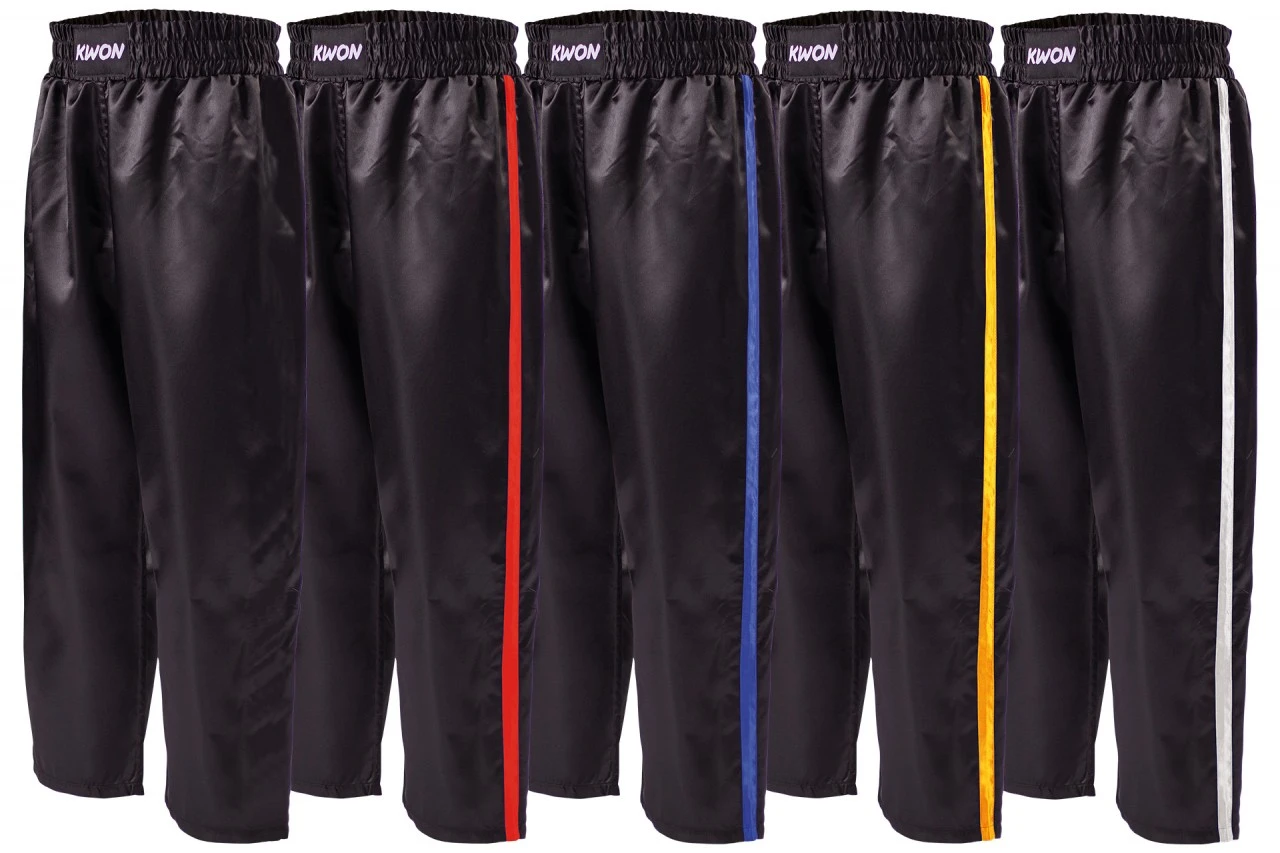 Die KWON CLUBLINE Satinhose mit aufgenähten Seitenstreifen ist aus 100% Polyester gefertigt. Der breite Elastikbund mit zusätzlicher Schnürung sorgt für den optimalen Halt.