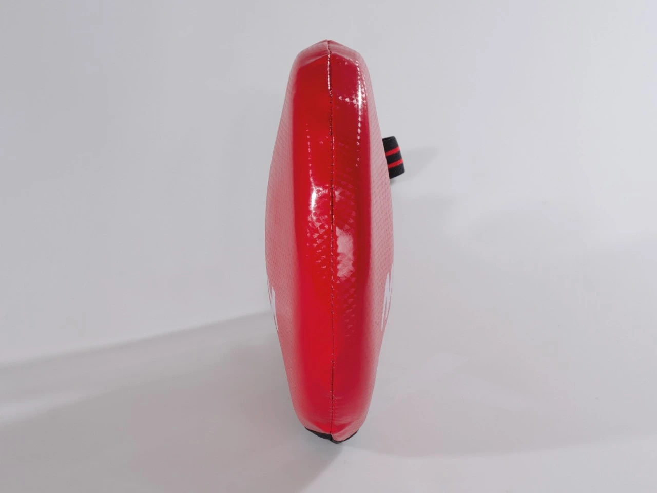 - Der dunkelrote leicht glänzende Kunstlederüberzug ist sehr strapazierfähig und hält den Belastungen des harten Kicktrainings stand.