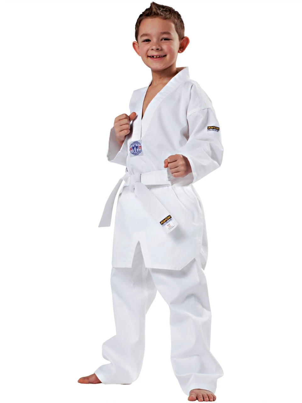 Der nach koreanischem Muster geschnittene Taekwondo Anzug Song ist aus angenehm zu tragendem Mischgewebe und hat eine Schlupfjacke im WT-Stil mit V-Ausschnitt.