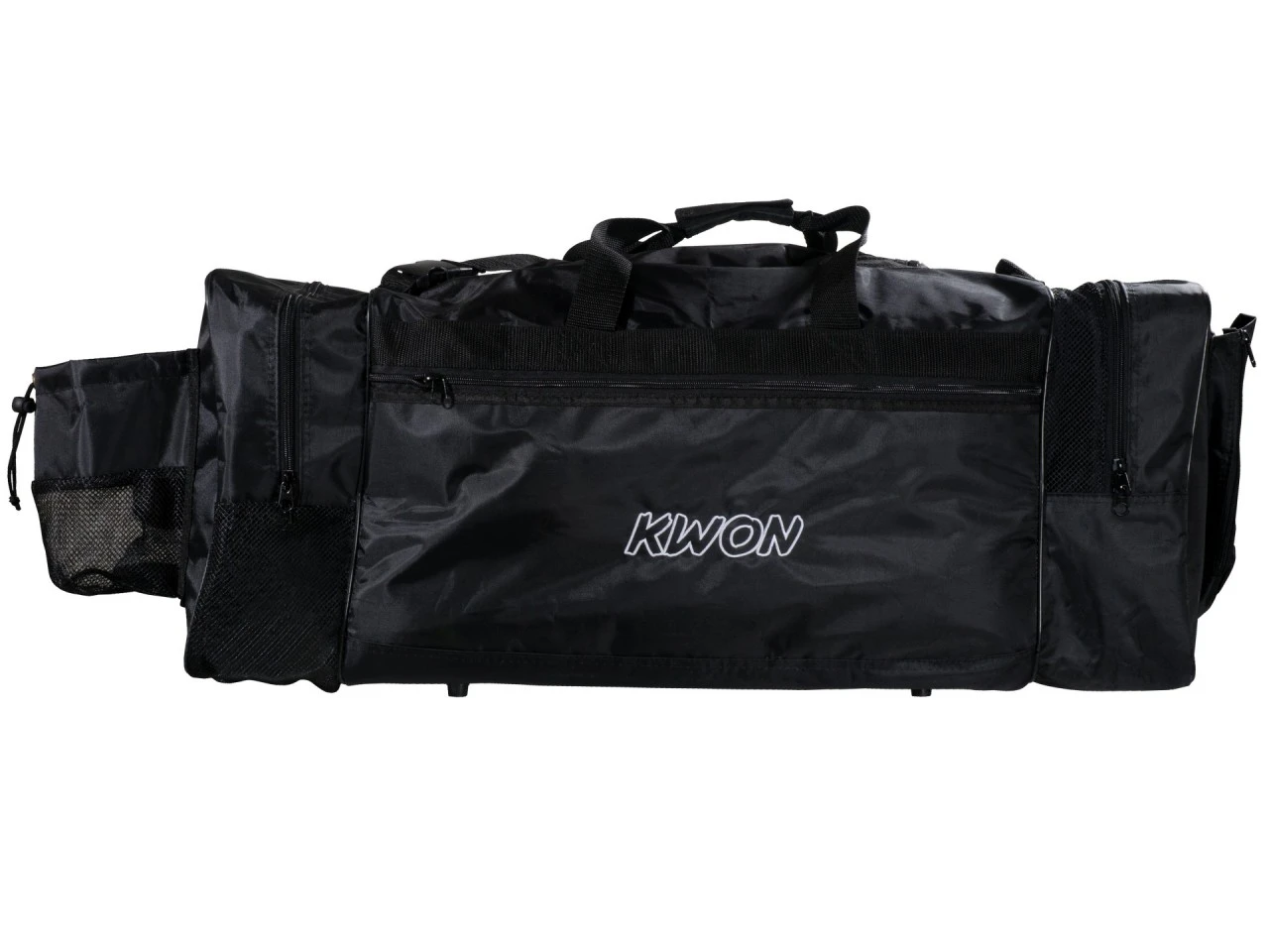 Die eingebaute Seitentasche bietet Platz für Taekwondoschuhe. Für die nasse Wäsche verfügt die Taekwondotasche über ein separates, abgeschossenes Abteil.