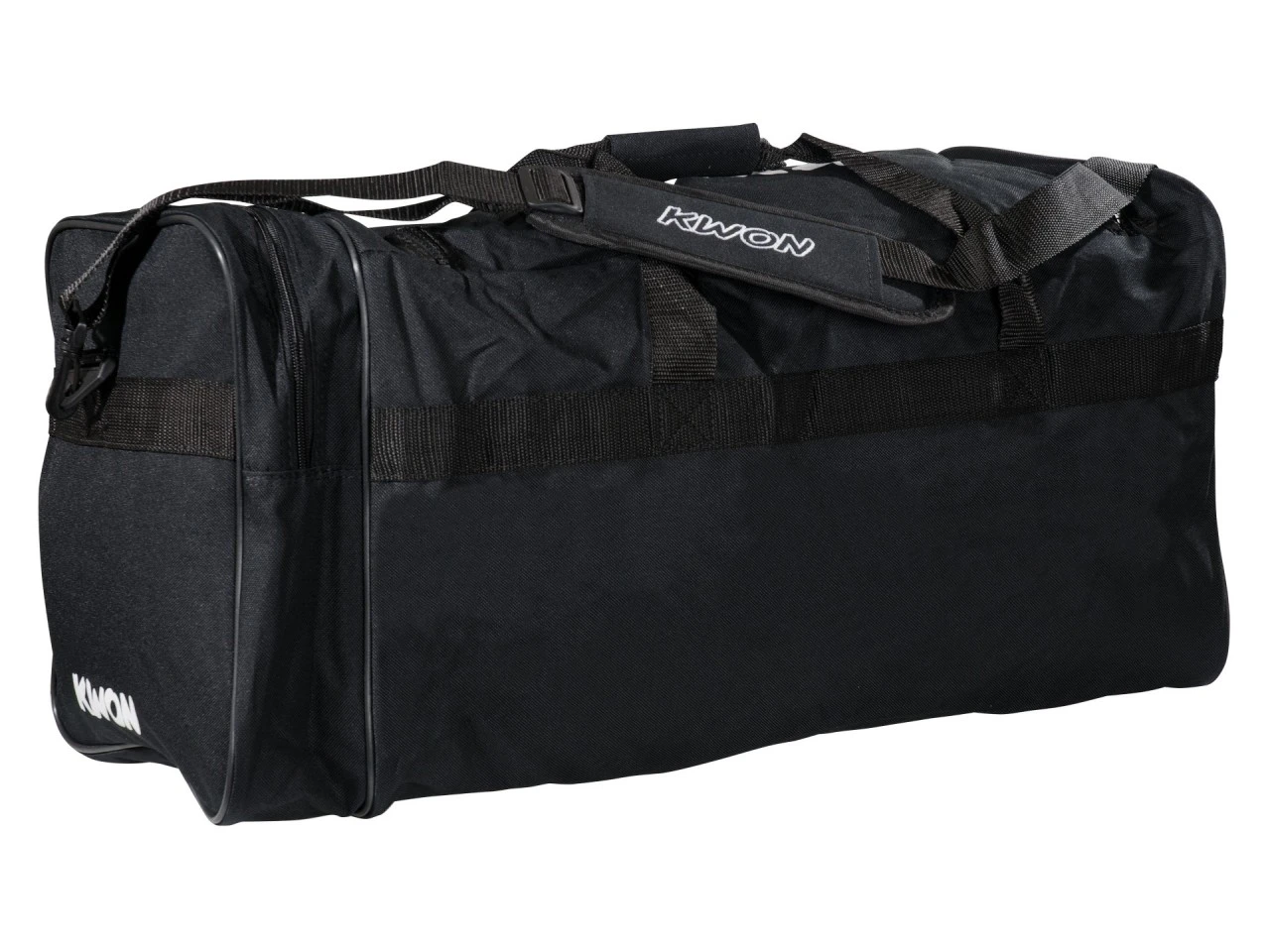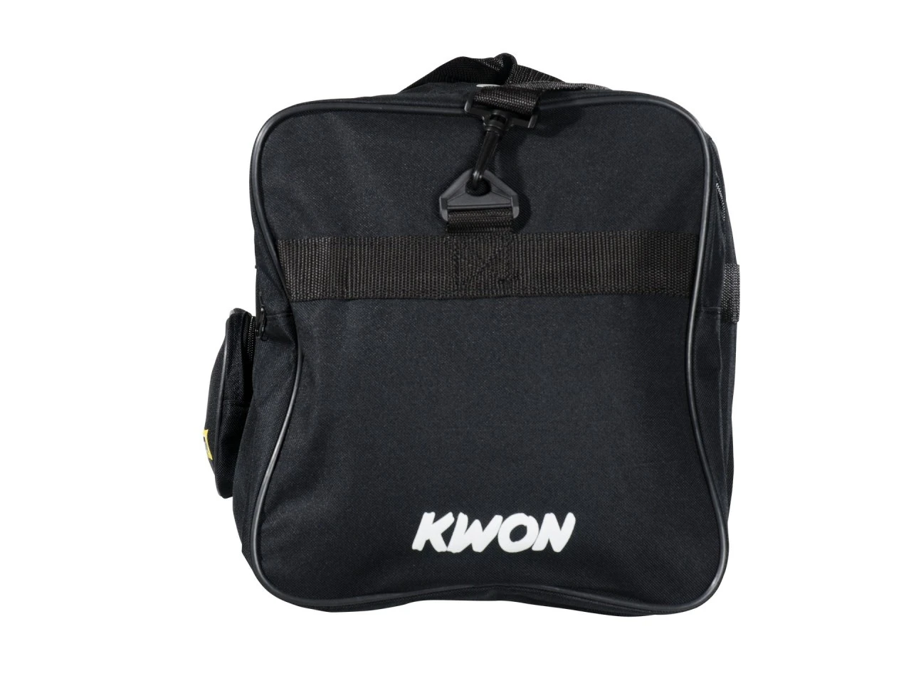 - Die Trainingstasche TTS mit einem Reißverschlussanhänger aus Metall mit dem Schriftzug „KWON“, zwei praktische Tragegriffe und einen Schulterriemen.